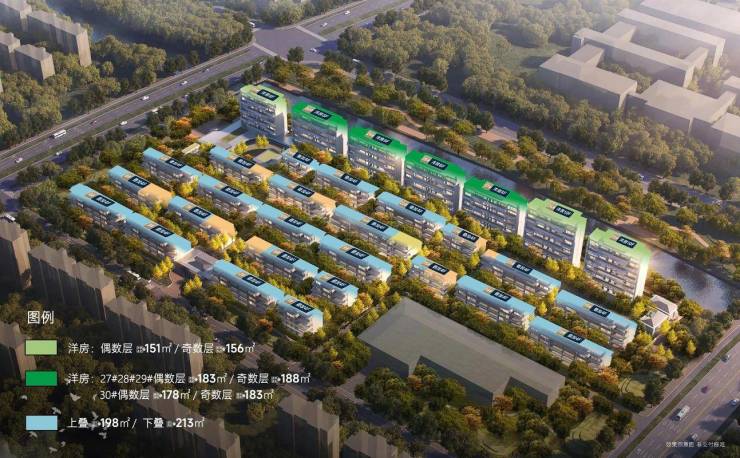 定位高端低密住宅,容积率1.3,规划7栋洋房(8-10F)和24栋叠墅(4F),总户数286户