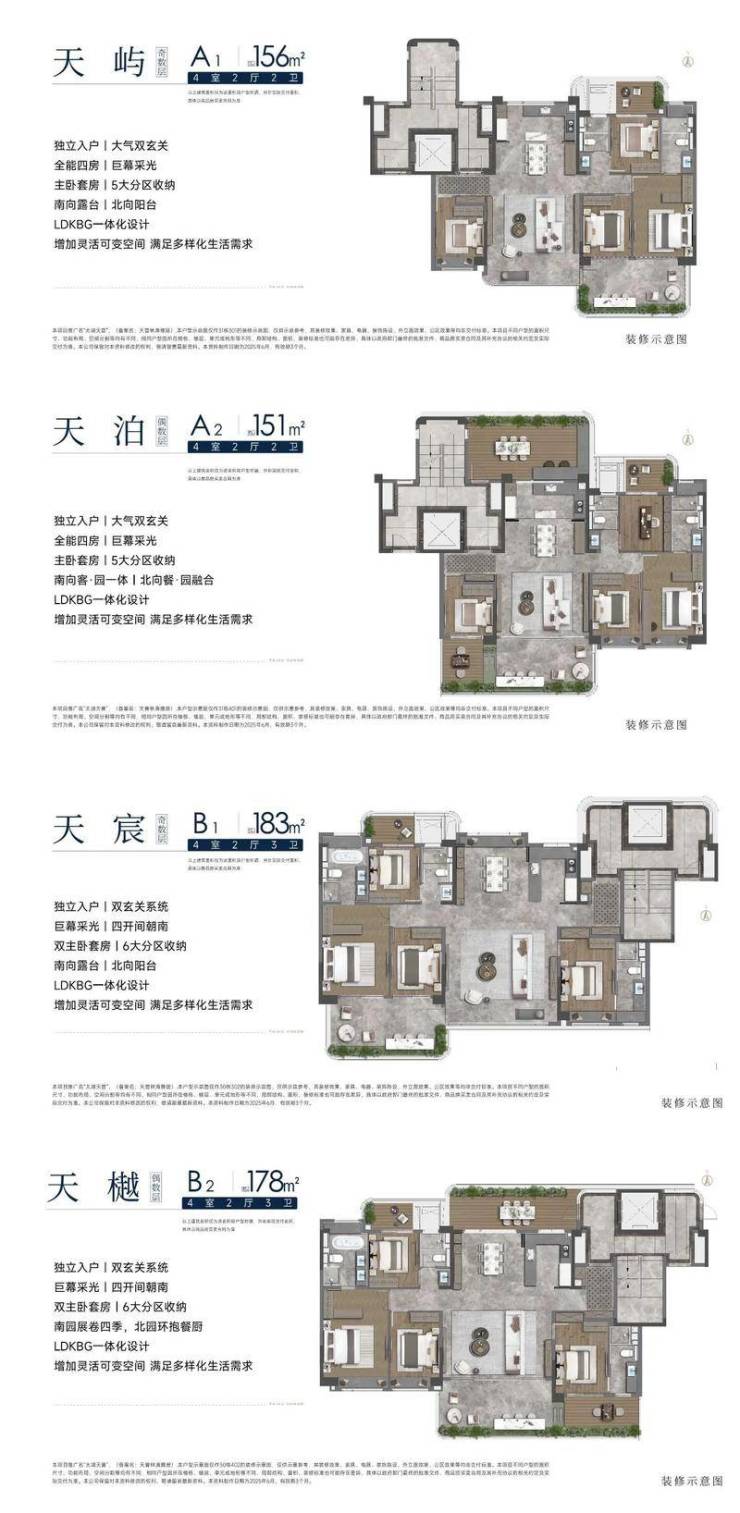 洋房:建面151-188㎡,四代宅设计,南北双花园,精装交付,单价6.5万-7.2万/㎡