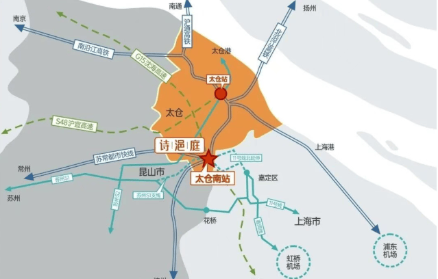 高铁:太仓南站一站直达上海虹桥(约18min),日均25班次