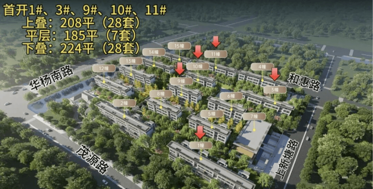 销售状态:目前在售,主力户型为185㎡平层、208㎡上叠和224-363㎡下叠
