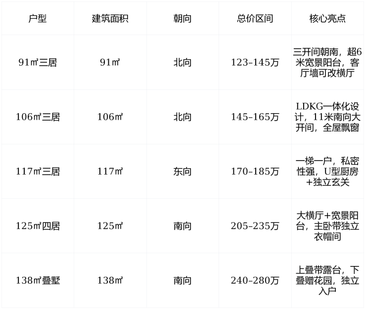 📏 在售户型与价格(2026年1月最新)