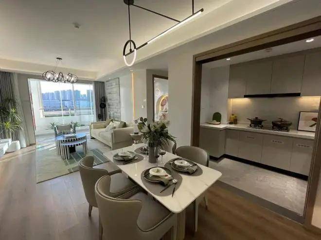入口餐厅与客厅同宽,双厅连通,是市面上少有的方厅设计,及可以使用大圆桌 的户型产品,可在家中招待亲友,轻松享受酒店包间体验。