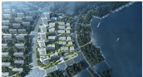 社区内部采用“ 水景+曲线树池 ”园林设计,实现湖景渗透