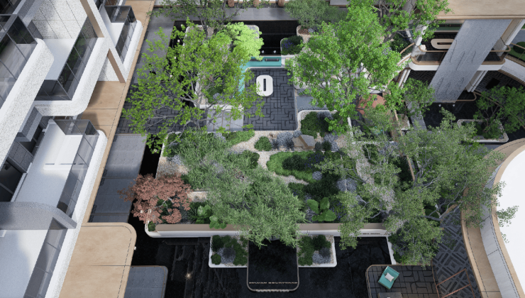 森海和庭打破了传统住宅的平面布局,首次将地面院落引入立体空间,实现了真正的“空中庭院”生活。