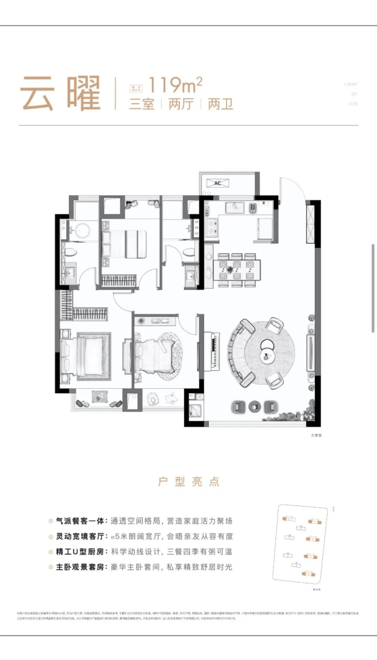 翡翠兰亭花园提供多种户型选择,包括99平方米的三室两厅两卫、119平方米的三室两厅两卫以及143平方米的四室两厅两卫。这些户型设计合理,南北通透,厨卫全明,且都配备了全景飘窗和南北双阳台,采光和通风条件极佳。特别是99平方米的户型,实得面积媲美市面110平方米的产品,性价比极高。