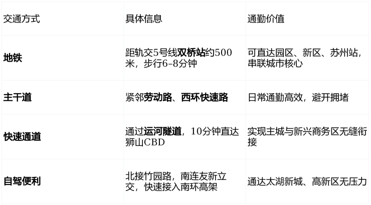项目地处姑苏“一核四城”之核,交通网络呈“地铁+高架+隧道”三维立体格局,通勤效率在老城区中属顶尖水平。