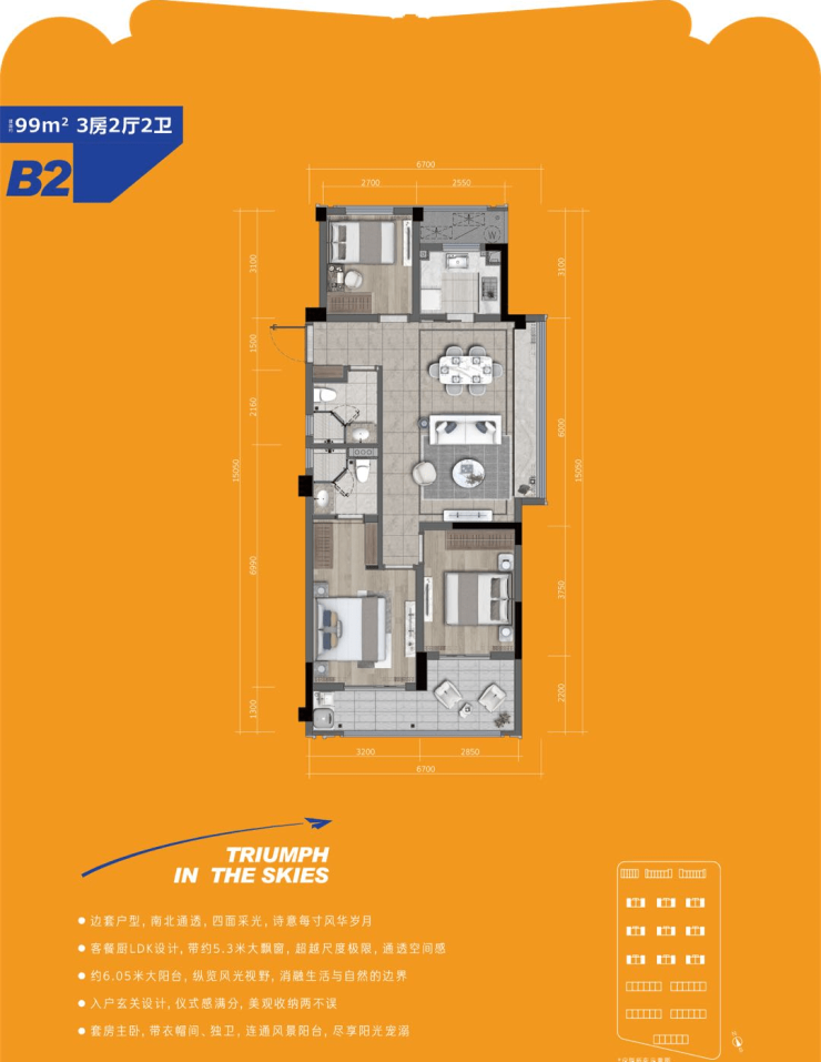区域内仅有在售的89方小户型,户型为三房两卫两厅,居住舒适感拉满