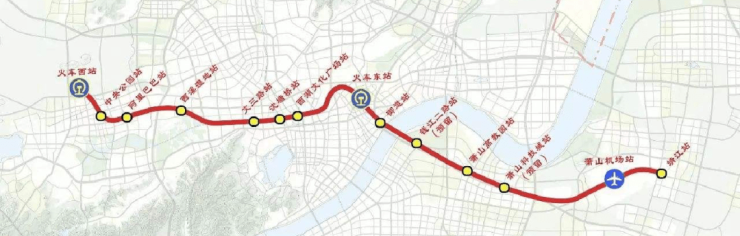 机场轨道快线——19号线(建设中)线路图