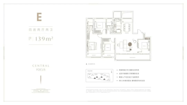 主力户型覆盖103-139㎡三至四房,适配刚需到改善全阶段家庭需求。所有户型均采用大面宽设计,103㎡小户型也能打造5.6米横厅,125㎡户型拥有6.3米阔绰横厅,搭配双联阳台,采光通风俱佳,空间感远超同面积段产品。全系精装交付,标配中央空调、地暖、新风系统三大件,部分户型还配备厨余垃圾处理器、电热毛巾架,细节之处尽显品质。