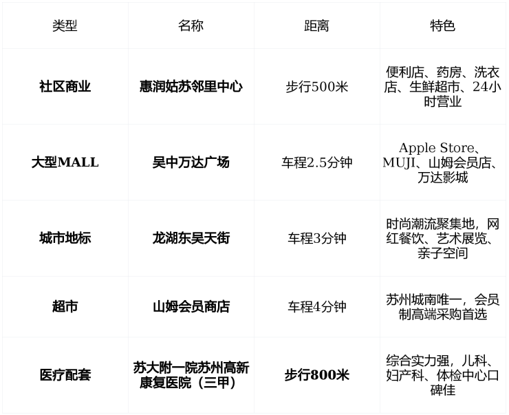 周边1公里内设10个公交站点,覆盖501路、502路、518路、528路、快线9号,通达木渎、越溪、太湖新城。