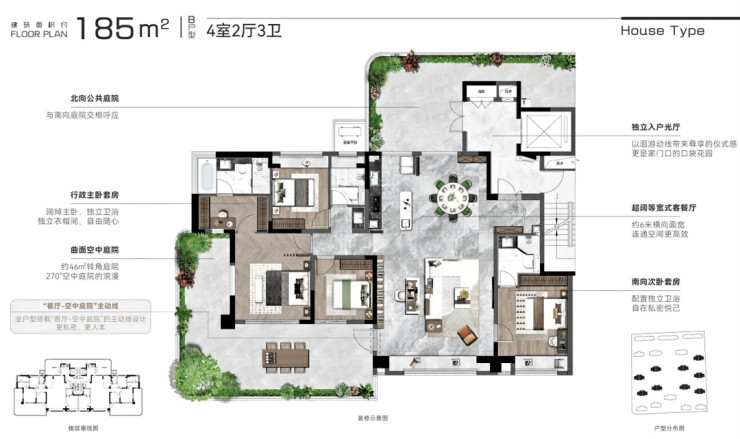 建面185㎡的奇数层户型,巧妙解锁多元生活空间:南向空中庭院与客厅无缝衔接,营造出“超级庭院”,突破传统空间限制,将自然美景融入居家生活,打造极致舒适的生活娱乐场景,开启无限可能的居住体验。