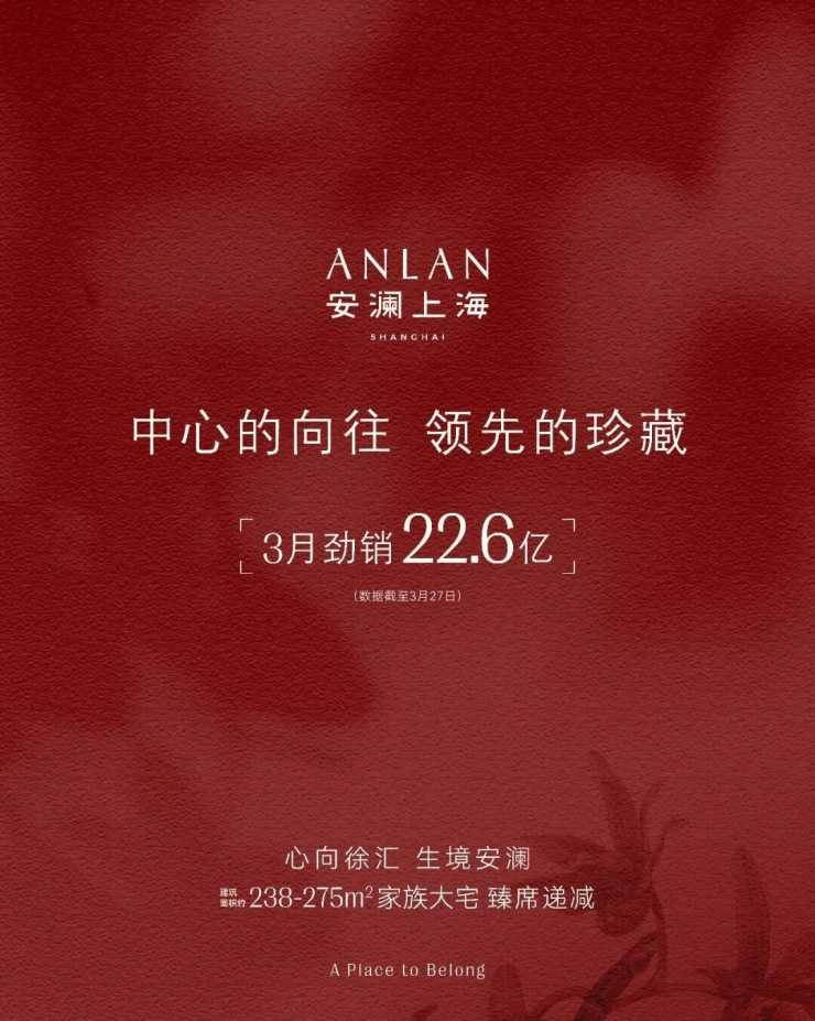 3月,安澜上海劲销22.6亿,以断层式领先优势,成为上海顶豪市场当之无愧的风向标。