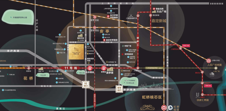 三轨交汇交通网络 :步行约50米即达上海地铁11号线“花桥博览中心站”,3站直达上海嘉定城区,5站抵达上海汽车城,15分钟通达上海虹桥枢纽。未来将与苏州S1号线(轨交11号线昆山段)无缝换乘,实现“沪苏同城化”交通闭环。同时临近绕城高速、京沪高速,自驾至安亭老街仅约4min,至上海市中心约30min,是长三角通勤族的“通勤效率天花板”级选择。
