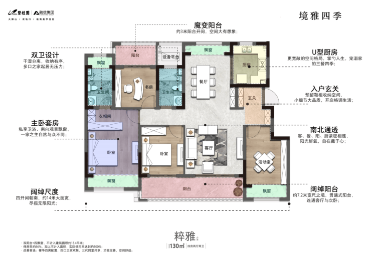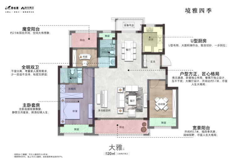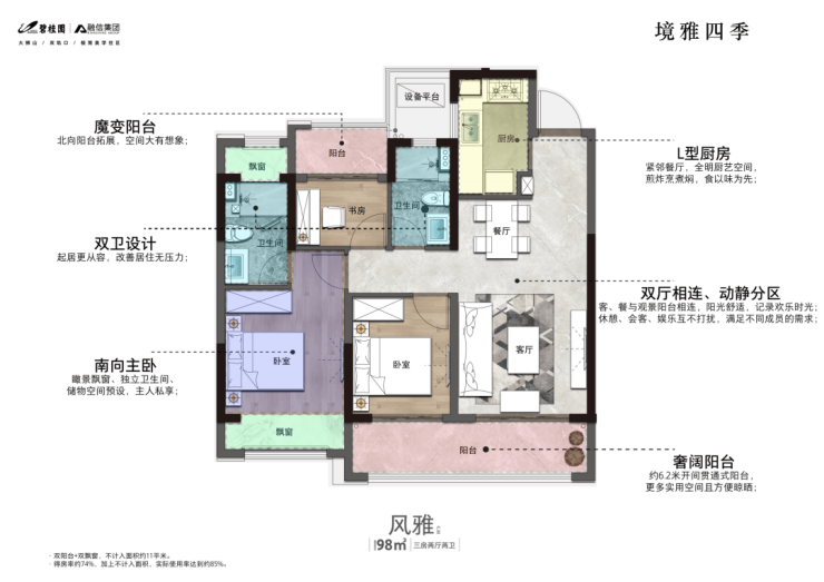 得房率优势明显 :98㎡户型实得面积约84㎡,比同面积楼盘多出10㎡以上使用空间