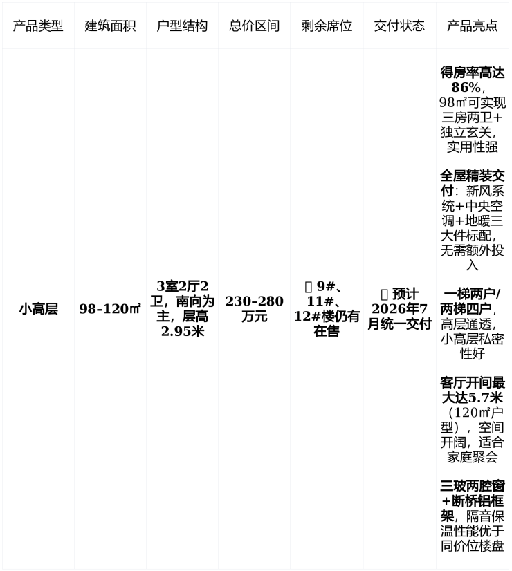 尾盘稀缺 :虽非全新开盘,但剩余房源户型完整,价格稳定,适合追求“现房感”的买家