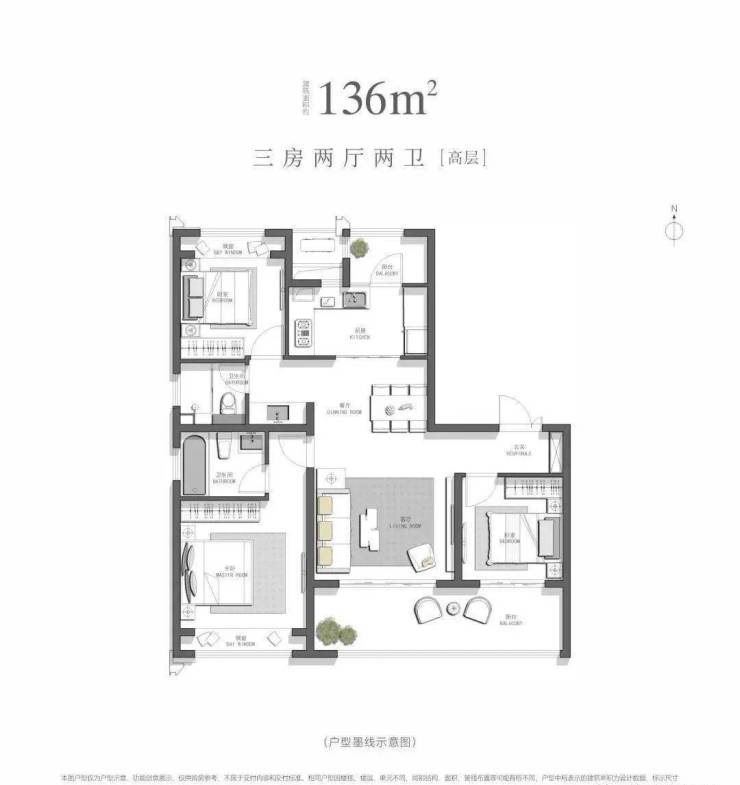 【户型面积】约136/143m²(高层)、约165㎡/195㎡ (洋房)