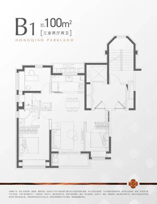 (建面约100㎡户型示意图,以实际交付为准)