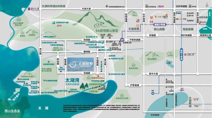 生态优势:背靠穹窿山5A景区,毗邻太湖湖滨湿地公园,3公里内37个公园环绕