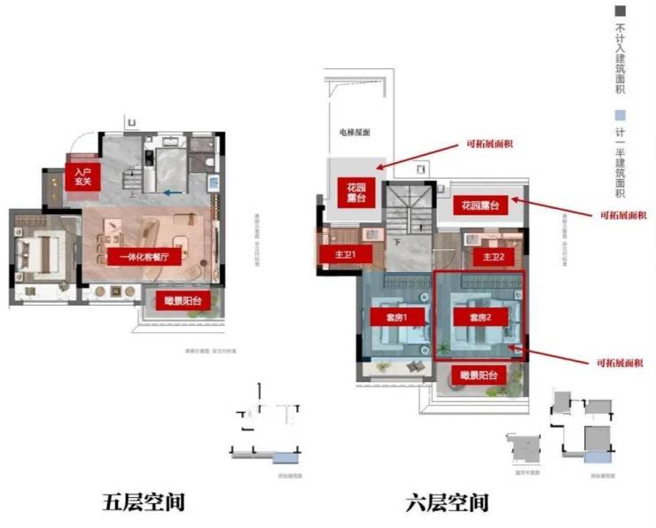 上叠(118-123㎡):3室2厅3卫,270°瞰景阳台+双露台