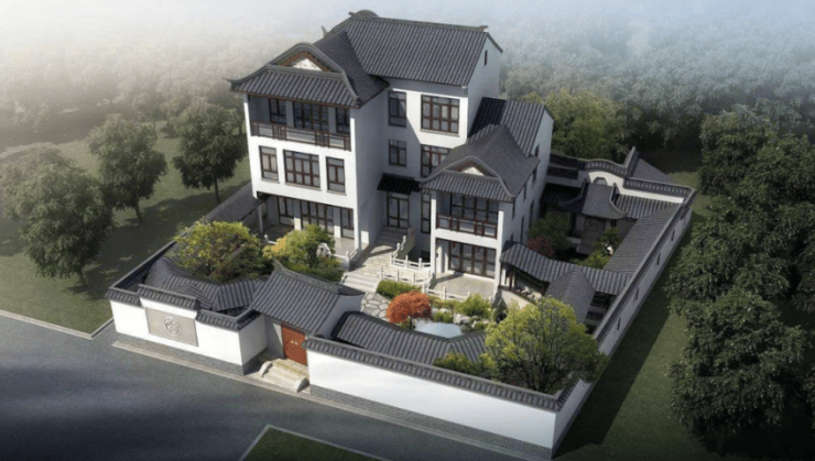 风格:纯中式别墅,以苏州园林为特征,采用“宅院合一”设计