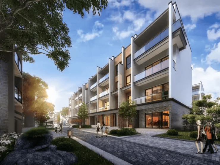 项目以现代中式叠拼别墅为主,融合江南水乡建筑风格,主力户型为四层设计的叠加别墅: