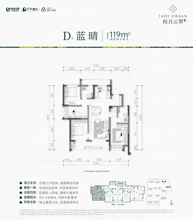 绿城作为国内知名房地产企业,以高品质、高性价比的产品著称,品牌口碑良好。桂月云翠园由绿城、保利、交控三大实力品牌联合开发,从项目开发建设到交付后的运营管理,全程高标准把控,杜绝烂尾、减配等风险,保障业主权益。