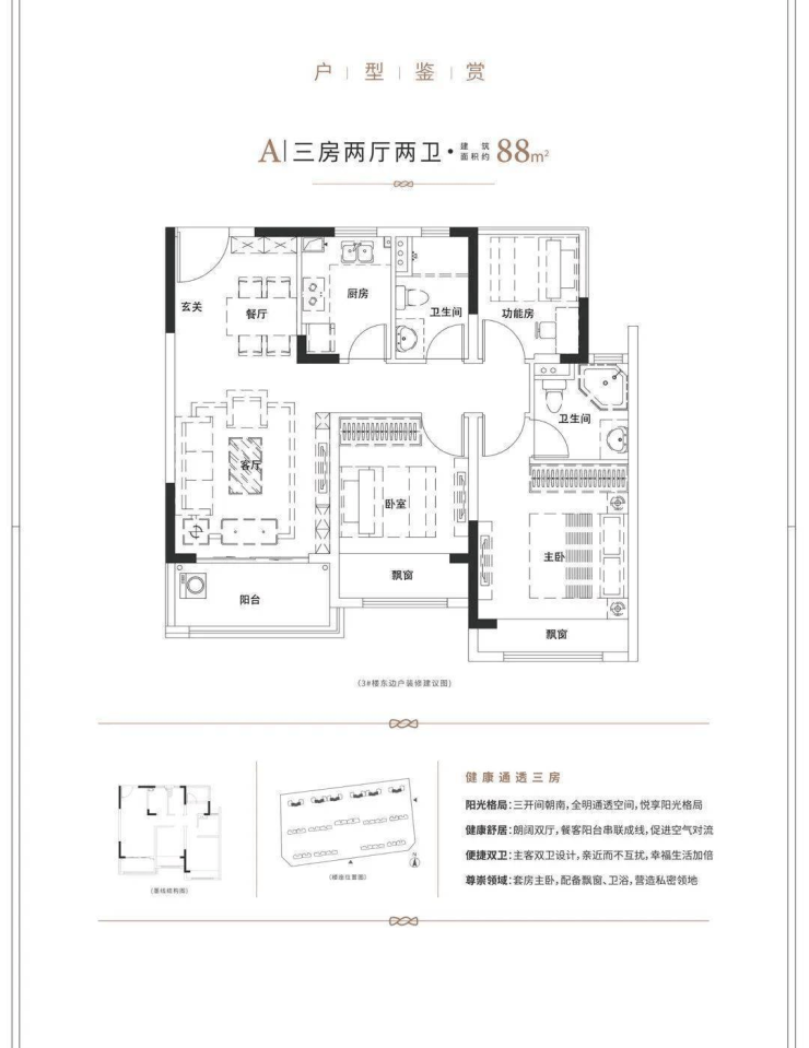建筑面积:88平米(三房两厅两卫)98平米(三室两厅两卫)
