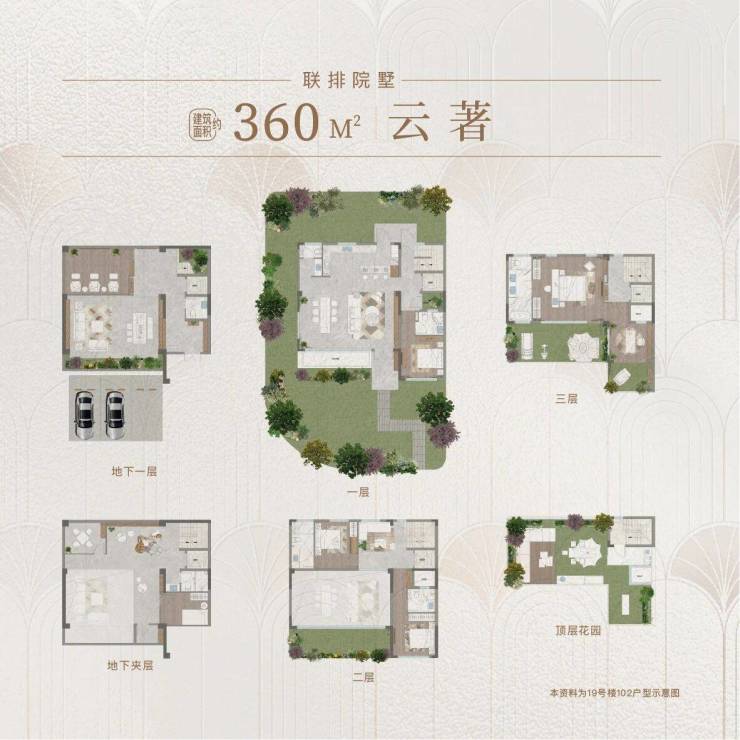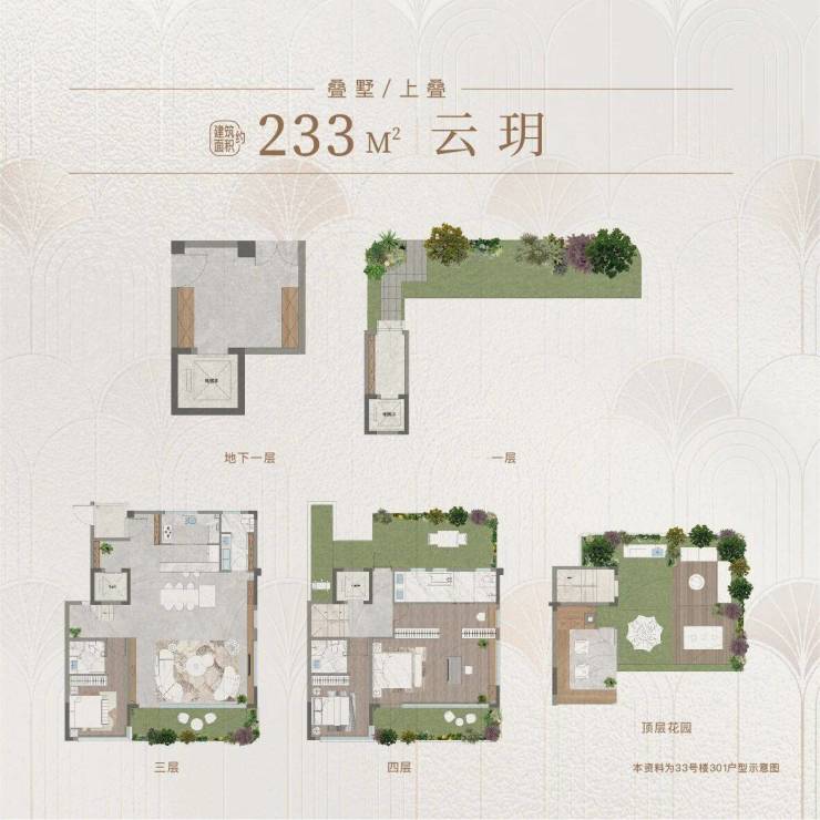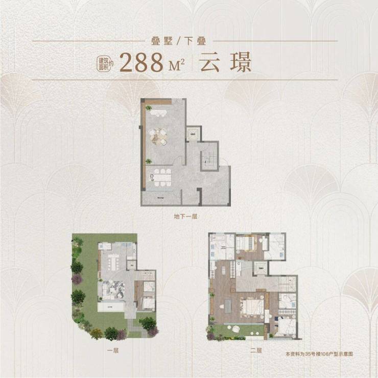 面积:上叠233㎡下叠288㎡合院360㎡