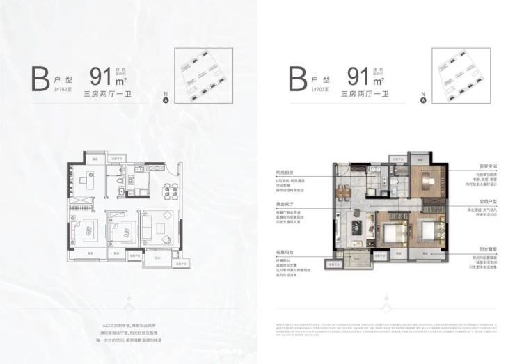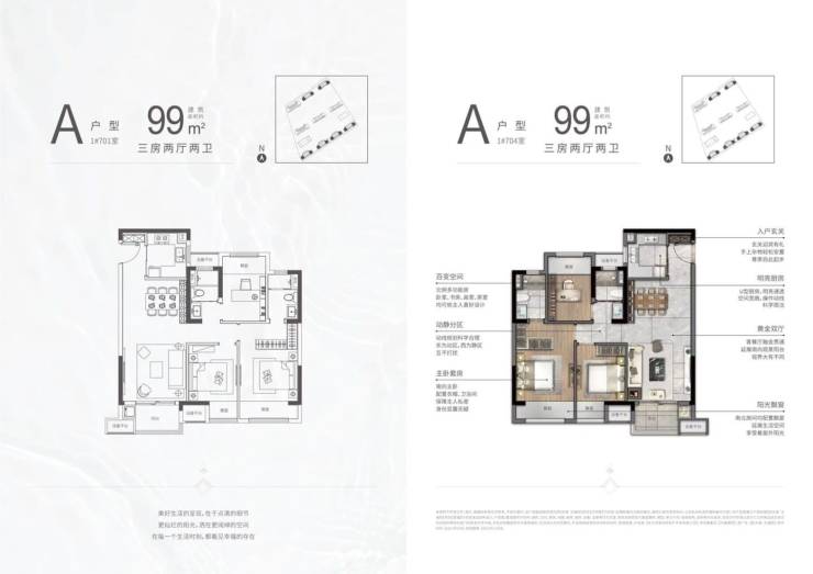 项目提供多种户型选择,包括78㎡二居、91-99㎡三居和125㎡四居