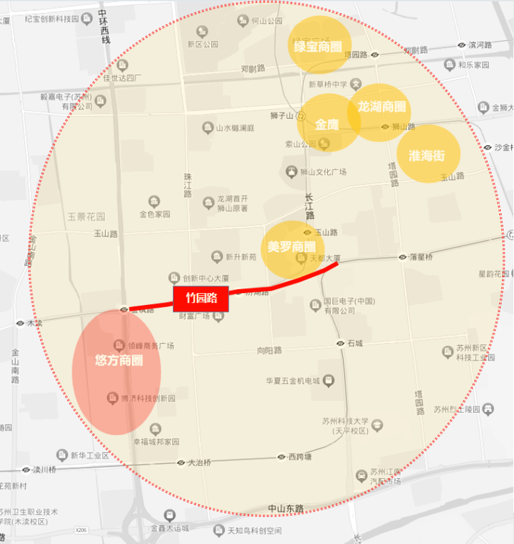 还有两条高架——中环西线、苏福快速路,相当于拥有内环+中环两条线,和狮山核心、湖西核心的配置是一样的。
