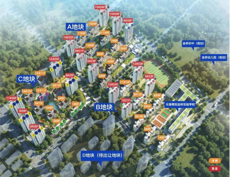 项目一墙之隔江阴青阳金桥实验学校,一路之隔规划了金桥幼儿园和初中