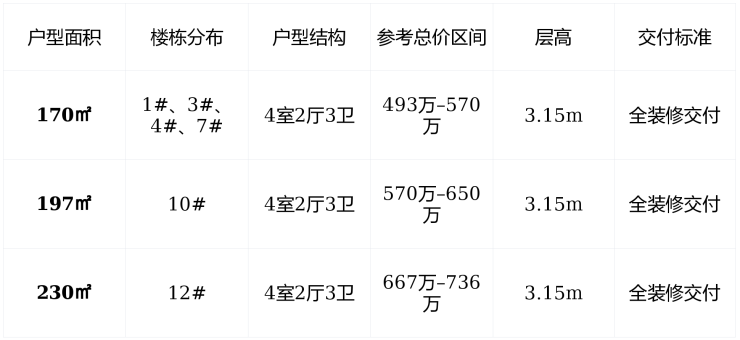 交付标准 :大金中央空调 + 威能地暖 + 松下新风系统 + 全屋品牌厨卫,精装交付,省去装修烦恼。