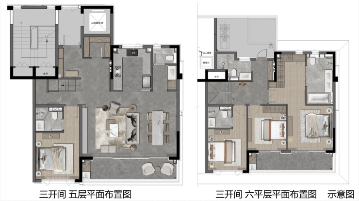 下叠户型配备 300平方米私家花园,独立南北入户;
