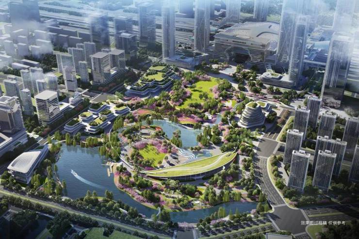 约30公顷诗画江南就在楼下,设置了骑行道、跑步道、慢行道等活力空间,现公园一期换乘综合体已开工,构建集公交、水上巴士、云轨、步道等于一体的“慢行网络”,与高铁、地铁网络并联,快慢有度。