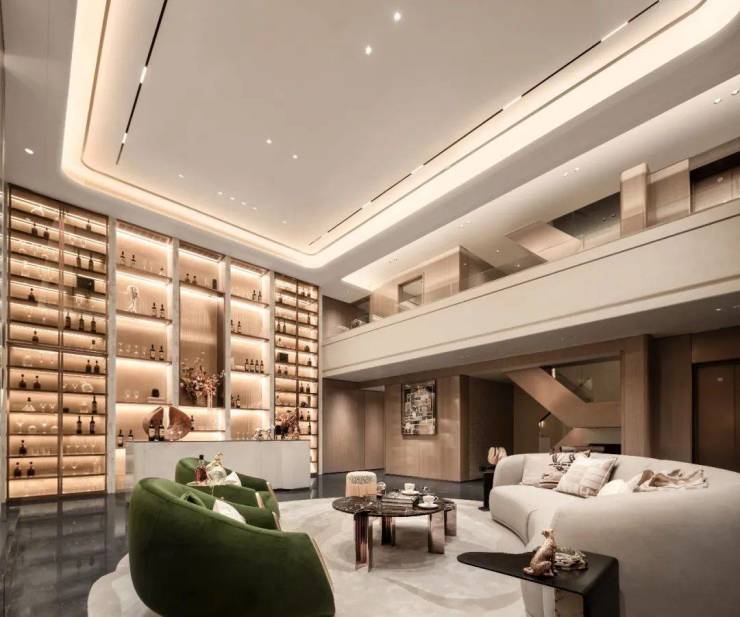 建面约380㎡合院以“一厅纵贯”为骨,取意宋代书斋“敞轩纳景”之妙,全面屏落地窗引天光云影入室,山河气韵、四时园色皆流淌于窗前,化作家族生活的和睦背景,成就大隐于市的风雅逸境。