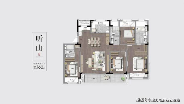 在户型设计上,山语澜院主打改善型产品,主力户型为建面约 105㎡、125㎡、140㎡的三房至四房,所有户型均做到南北通透、全明格局,部分户型配备约 6.8 米横厅和双阳台,空间利用率极高。项目采用精装交付标准,配置中央空调、新风系统、全屋地暖等舒适系统,并选用科勒、方太等一线品牌厨卫设备,从细节处彰显品质生活。