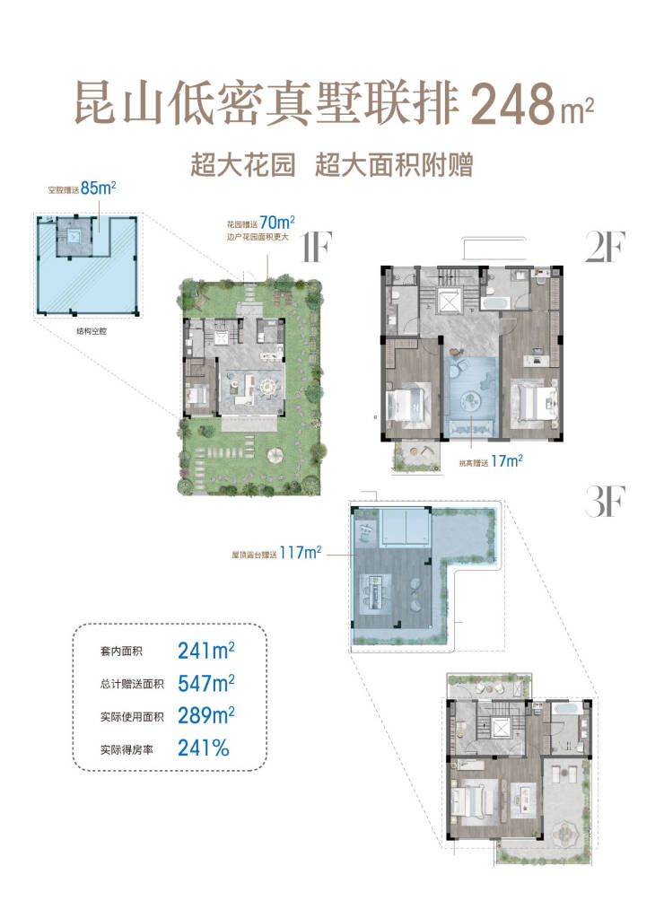 创新设计:每户配备星空露台、四季花园、独立庭院,实现“有天有地”的墅居理想。