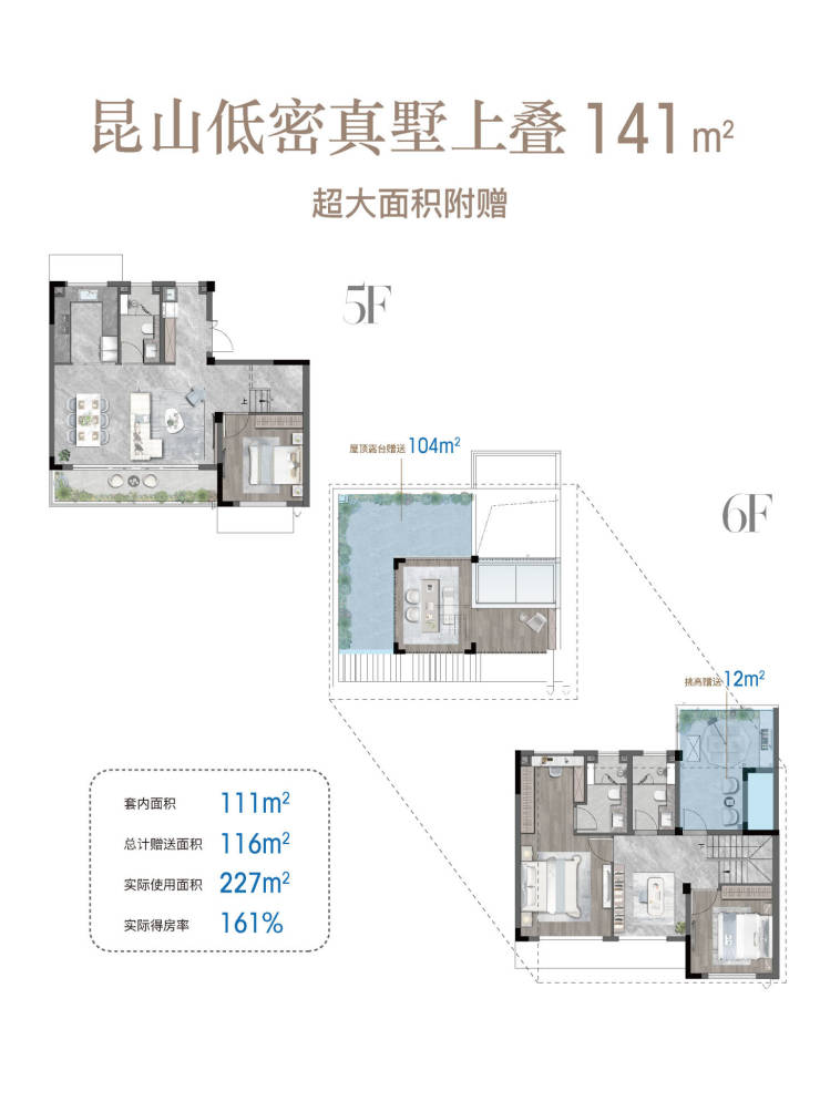 建筑面积:约141–318㎡,主力户型为3-5居,得房率超90%。