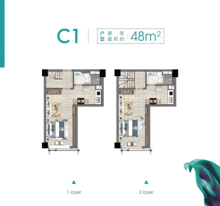 功能空间:设计独立卫生间、烹饪空间,满足双层生活所需