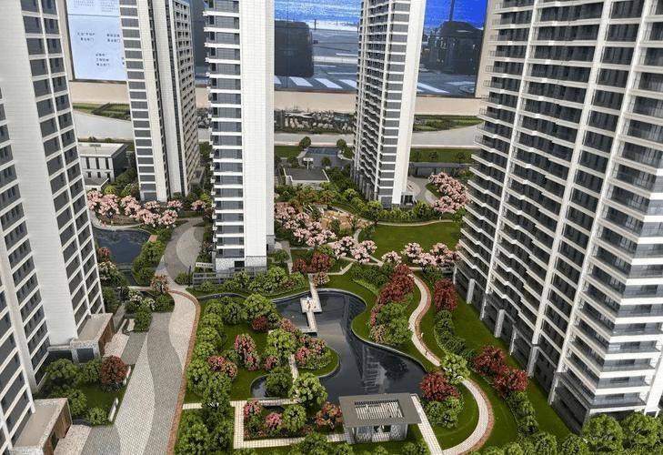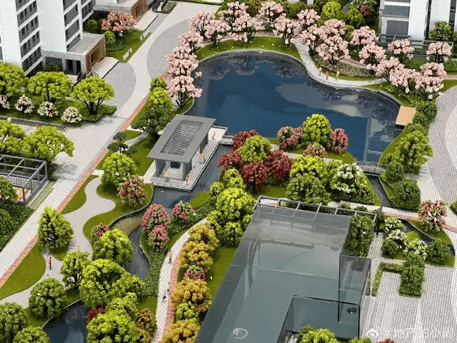 700米樱花大道 + 2900㎡水景园林:春日落樱如雪,四季有景;架空层设禅意空间、儿童科研角,下沉庭院连接水系,真正实现“园中有宅”。