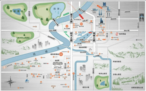 主干动脉:项目紧邻时代大道(2026年全线通车),5个红绿灯直达滨江奥体、钱江新城、武林商圈,通勤时间20–25分钟。