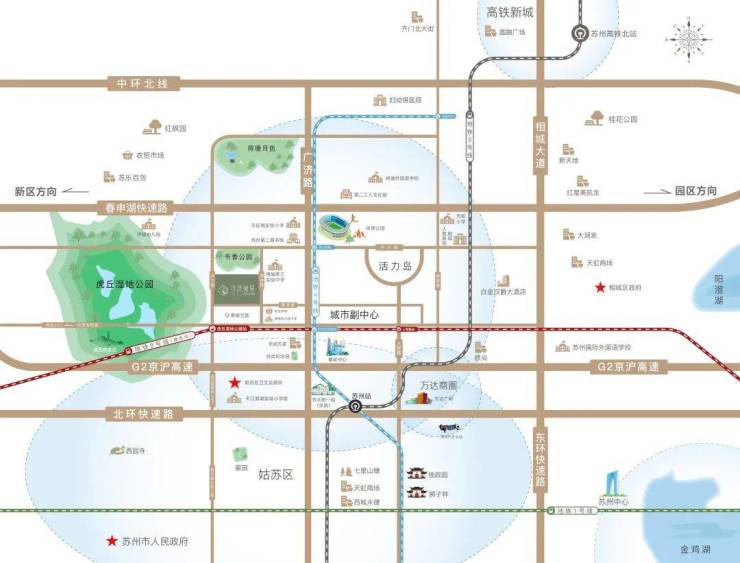 活力正核 蓄势磅礴待发项目占位活力岛正核,咫尺姑苏古城区,比邻苏州园区、新区时代新城,磅礴待发,与苏州共风华。