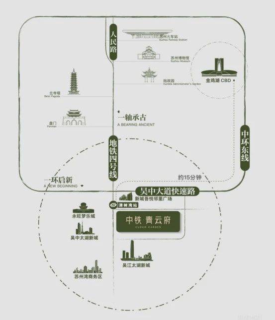 发展之环:中环东接园区产经引擎,西融狮山创新脉络,南承太湖新城生态蓝图,北启高铁枢纽经济,便捷通达苏州多中心,启幕现代化城市发展新篇章。