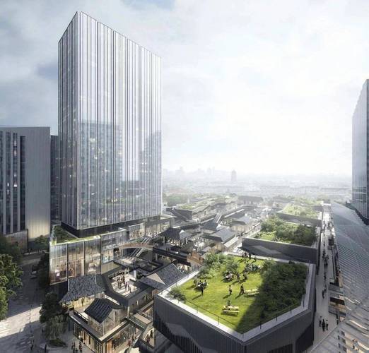 项目由 2 栋超甲级写字楼、一座重奢商场、一座园林式商业步行街,四座酒店(超五星级酒店丽思卡尔顿、万豪行政公寓、新加坡雅诗阁公寓等)以及一座艺术馆构成。在这里,工作、购物、休闲、艺术欣赏一站式满足,生活品质全面提升。