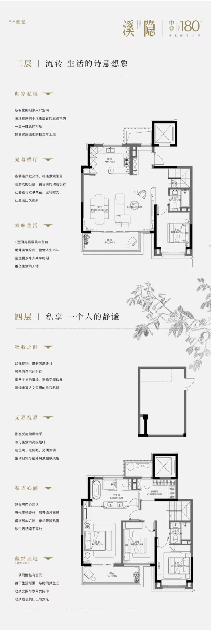 叠墅产品:上叠150㎡总价约470万起,中叠180㎡总价约530万起,下叠295㎡总价约613万起。叠墅产品一梯两户,私密性强,空间层次丰富,适合追求品质生活的改善型购房者。