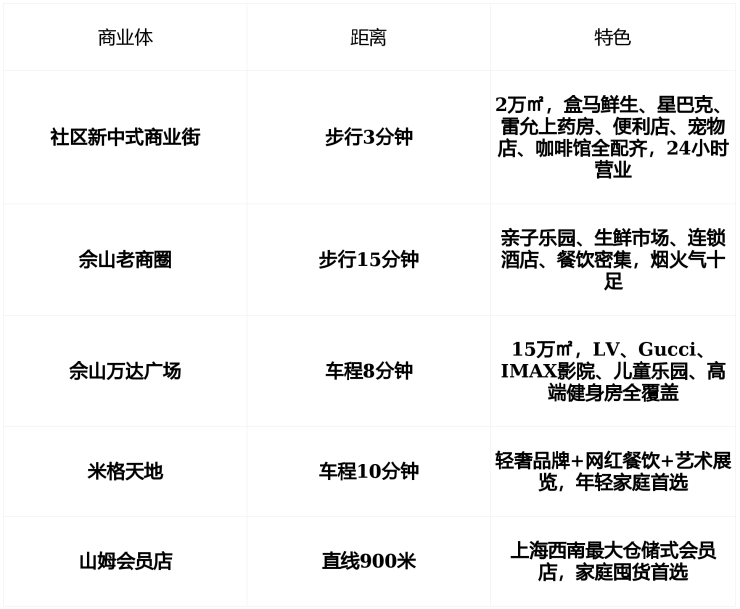 优势 : “社区底商+区域商圈+城市级综合体”三重覆盖,生活节奏从容,不依赖单一中心 。