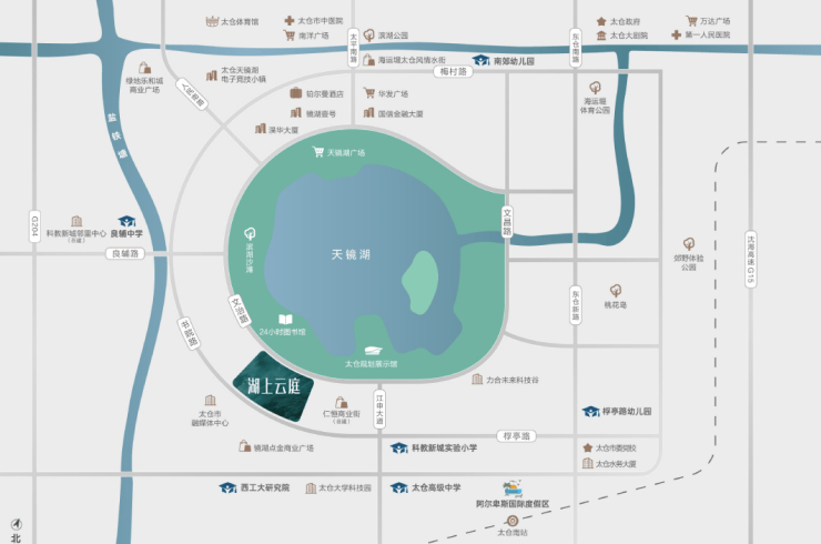 轨道交通:紧邻太仓南站,未来嘉闵线北延段(在建)通车后,直达上海虹桥/闵行,实现沪太半小时通勤。