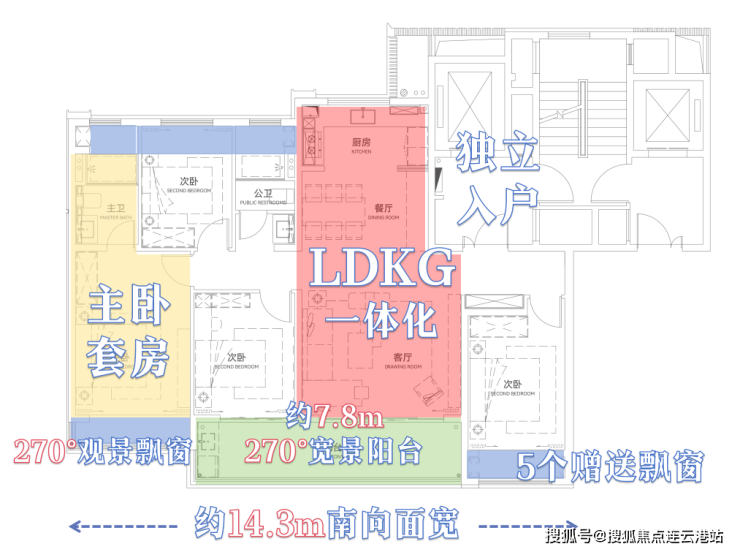 约7.8m大面宽南向双联阳台,270°视野连接居室与自然。