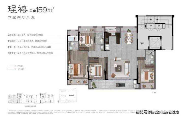 📌 购房提示 :124㎡户型实际使用面积约97㎡,四室两卫布局紧凑,适合三代同堂;159㎡户型配L型全景阳台,空间感极强,为当前市场稀缺改善标杆。
