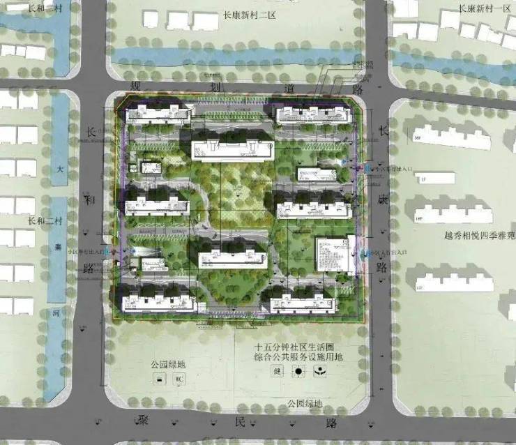 楼栋布局:8栋16-17层小高层,总户数634户,车位比1:1.5